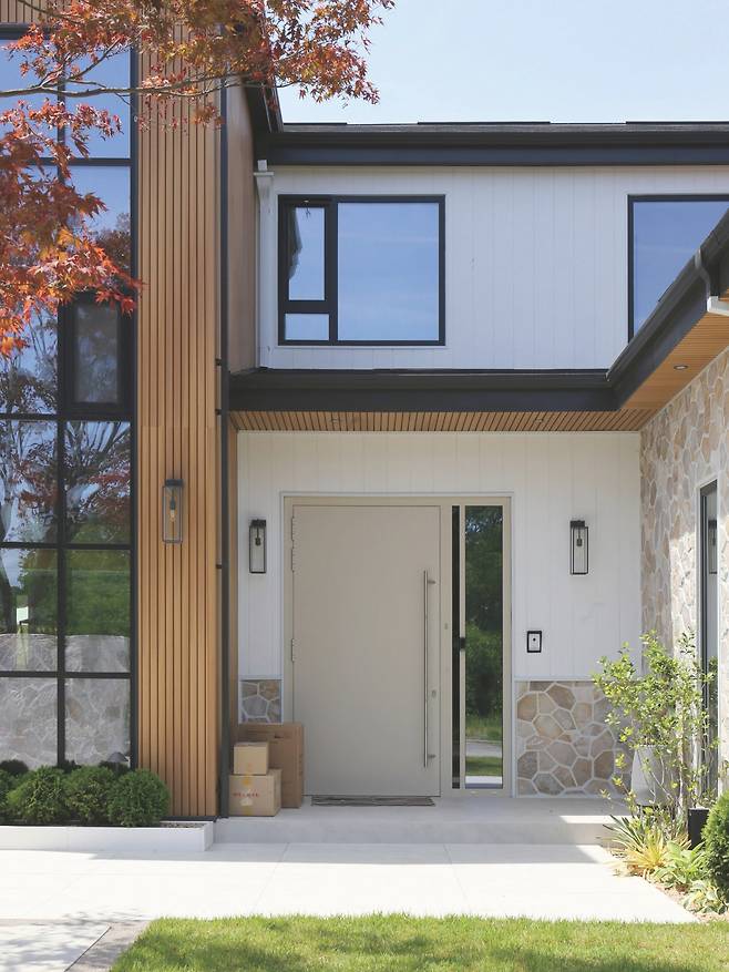 무려 세 개 층에 이르는 대저택이지만 그 규모가 부담스럽지는 않다. 다양한 외장재를 밝은 톤으로 선정했기 때문이다. 지붕에는 어두운 징크를 얹고 계단실이 위치한 곳엔 창호가 쭉 이어져 있어 모던함도 연출된다. 특히, 모자이크 패턴의 벽돌 마감은 흔하지 않아 방문객들의 눈길을 끈다. 뾰족뾰족한 여러 개의 크고 작은 박공지붕이 조합된 모습은 어쩐지 감탄사 ‘와우’를 외칠 것만 같은 미국 감성을 전한다.