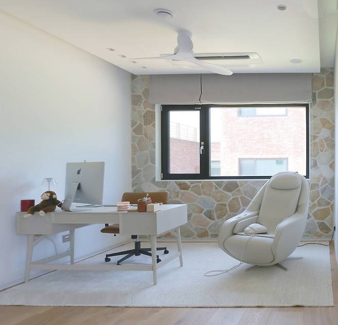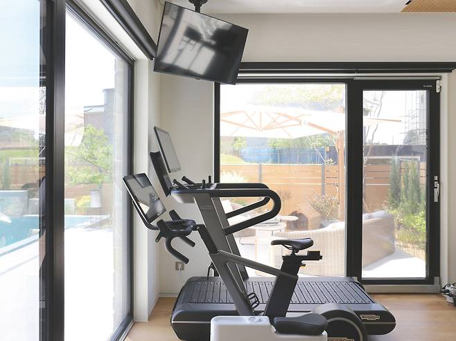 평소 운동도 꾸준히 병행하는 그의 라이프스타일에 맞춰 1층에는 별도의 아담한 운동실도 계획했다. 수영장이 바라보이는 큰 창을 설치해 따스한 햇빛이 스미는 등 여유 있는 경치와 함께 운동에 집중하기에 좋은 환경이다.