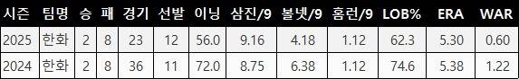 지난 시즌 한화 이글스가 한국시리즈 무대를 밟을 수 있었던 건 합작 33승을 거둔 외국인 원투펀치 폰세와 와이스의 '미친 활약'이 절대적이었다.
