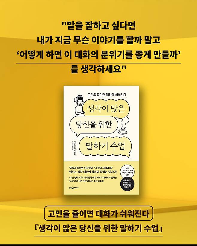 말만 잘하는 사람이 아니라, 호감가게 말하는 사람이 되는 법을 알려주는 책<생각이 많은 당신을 위한 말하기 수업>을 읽어보세요.
