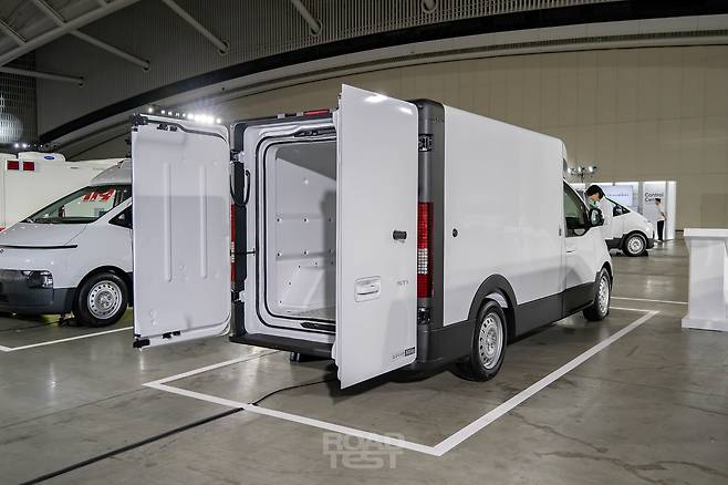 배터리 용량은 ST1 카고와 냉동 카고 모두 76.1㎾h. 1회 충전 주행거리는 환경부 기준 카고 317㎞, 카고 냉동 298㎞다. 참고로 58.8㎾h 배터리를 얹은 포터 2 일렉트릭의 복합 주행거리는 기본형 211㎞, 특장차 177㎞다.