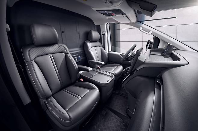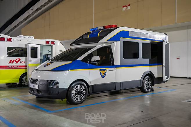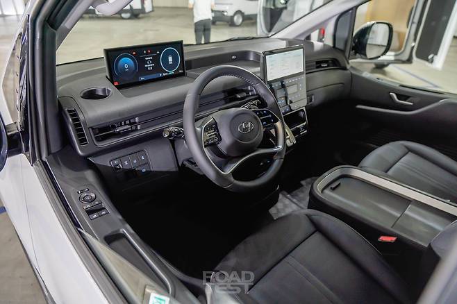 실내는 스타리아와 거의 똑같다. 10.25인치 중앙 모니터와 4-스포크 스티어링 휠, 전자식 변속 버튼이 대표적이다. 계기판은 스타리아의 10.25인치 화면 대신 12.3인치 컬러 LCD 디지털 클러스터가 들어갔다. 스마트폰 무선 연결을 지원하는 안드로이드 운영체제 기반 소프트웨어도 품었다. 시트 사이에는 스타리아 라운지에 들어가는 대용량 센터콘솔이 자리했으며, 대시보드 상단 수납함과 컵홀더 등으로 실용성을 챙겼다.