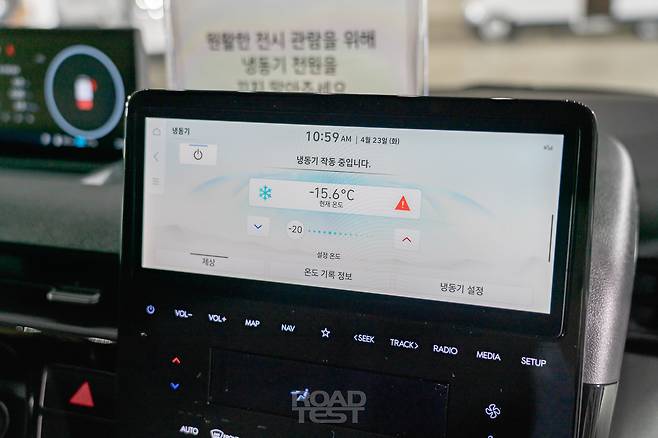 ST1 카고 냉동의 인포테인먼트 시스템에는 냉동기를 제어할 수 있는 ‘냉동기 컨트롤러’가 들어갔다. 인포테인먼트 화면의 냉동 애플리케이션과 연동돼 운전석에서 냉동기 온도를 확인할 수 있으며, 냉동기를 켜고 끄거나 온도를 설정하는 등 제어도 가능하다. 카고 온도 이탈 경고 기능도 있어 냉동기가 설정한 온도에서 벗어날 경우 클러스터 화면과 경고음을 통해 알린다. 또한 냉동기 전원을 고전압 배터리에서 끌어와 냉동기를 위해 별도로 배터리를 충전해야 하는 번거로움을 줄였다.