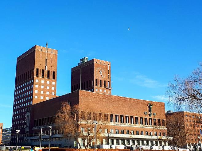 오슬로 시청은 노르웨이의 상징적인 행정의 중심이자 수도로서 유명한 곳인데요. 1950년에 완공된 이 건물은 노르웨이 건축가 아르네베르그와 폴라르가 설계했으며, 노르웨이 국민의 독립과 자유를 기념하기 위해 지어졌습니다.