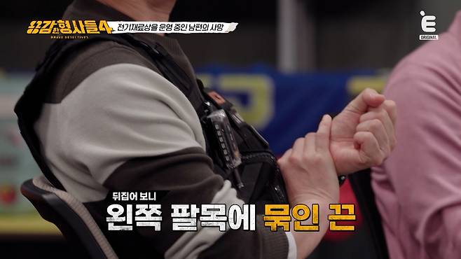 게다가 시신을 뒤집어 보니 왼쪽 팔목에 끈이 묶여 있었고