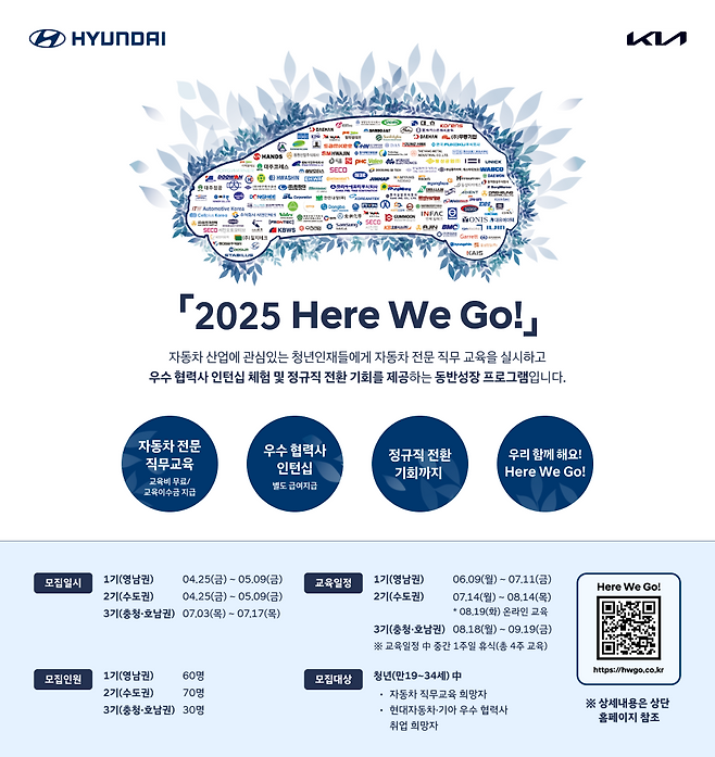 현대차·기아는 협력사의 인재 채용을 지원하고 청년에게 양질의 직무 경험을 제공하는 동반성장 프로그램 '2025 히어 위 고(Here We Go)'를 실시한다고 25일 밝혔다.