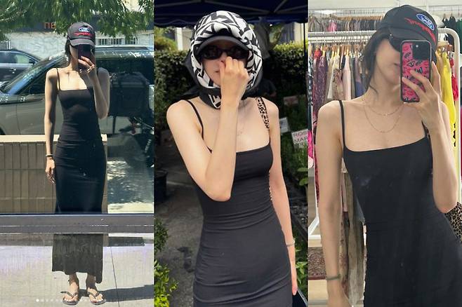 초밀착 블랙 원피스는 뱃살이 아닌 그녀의 가녀린 직각 어깨와 쏙 들어간 얇은 허리만을 부각해 놀라움을 자아냈습니다.