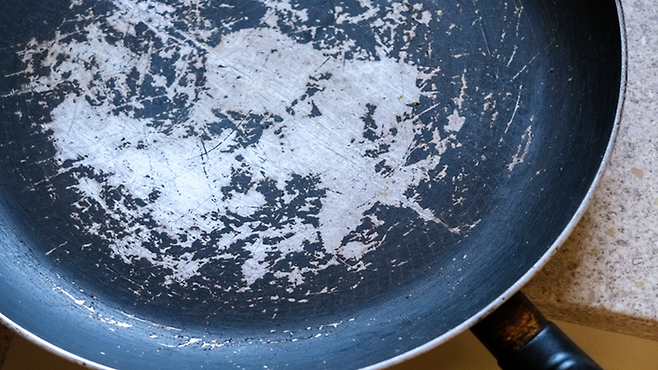 코팅이 손상된 팬을 관리할 때 가장 먼저 해야 할 일은 표면 정리다.