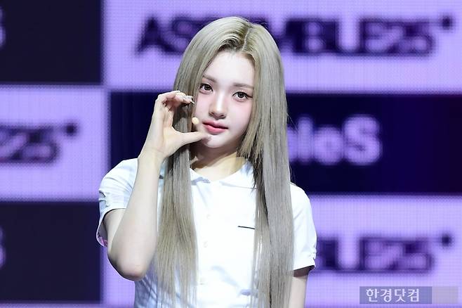 그룹 트리플에스(tripleS) 곽연지가 12일 오후 서울 한남동 블루스퀘어에서 열린 완전체 디멘션(DIMENSION) 새 앨범 'ASSEMBLE 25(어셈블25)' 발매 기념 쇼케이스에 참석해 포토타임을 갖고 있다.
