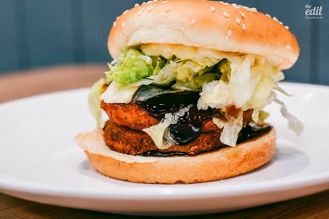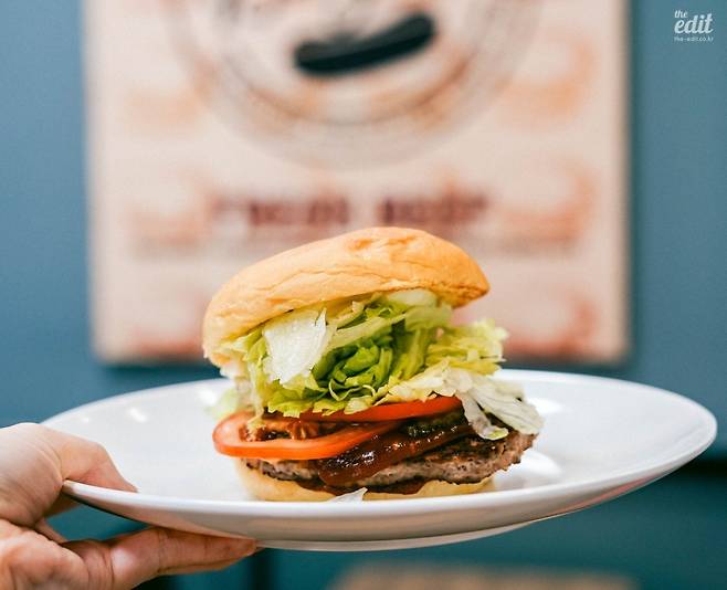 티렉스 + 토마토 추가_ 후추의 매운 맛이 느껴지는 티렉스에 토마토가 더해져 버거의 프레쉬함이 더욱 강해지는 조합입니다.