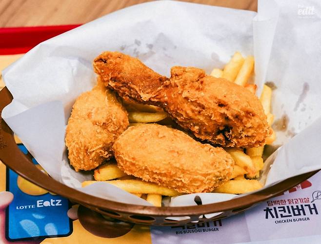 치킨_ 롯데리아에서 치킨 파는 것 알았어요? 아직 먹어 본 적 없다면 ‘무슨 햄버거집에서 치킨이야?’라는 생각을 할 수도 있습니다. 모르셨겠지만 롯데리아는 사실 치킨 맛집입니다. 치킨은 몇 조각 먹다보면 ‘좀 짠데..’ 싶을 정도로 염도가 높습니다. 싱거운 걸 좋아한다면 자극적일 수 있어요. 그래도 롯리 치킨 안 먹어 봤다면, 한 번쯤은 경험하길 추천합니다. 치킨 한 조각 가격은 2,900원.