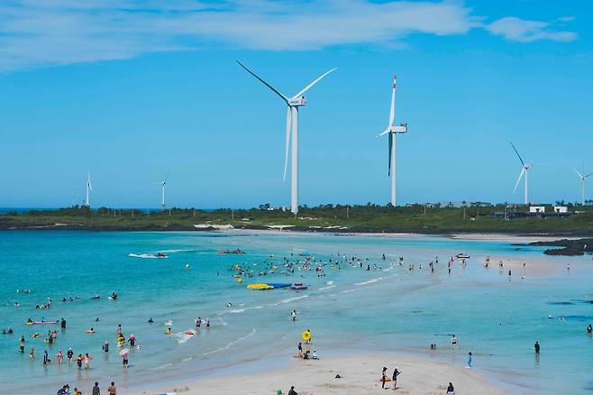 김녕 성세기해변까지 이어지는 산책길을 따라 걷다 보면 풍력발전소, 그리고 이국적인 바다와 함께 그림 같은 사진을 남길 수 있는 것도 꿀팁!