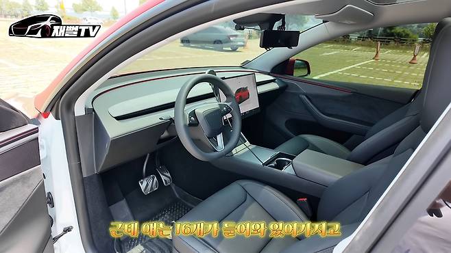 화려한 차량들을 많이 봤기 때문에, 모델 Y의 단출한 실내는 처음에는 뭘 만져야 할지 모를 정도로 낯설었습니다. 하지만 이번 모델부터 처음으로 우주선처럼 길게 들어오는 앰비언트 라이트가 적용되어 밤에는 마치 우주선을 타고 가는 듯한 느낌을 준다고 합니다.