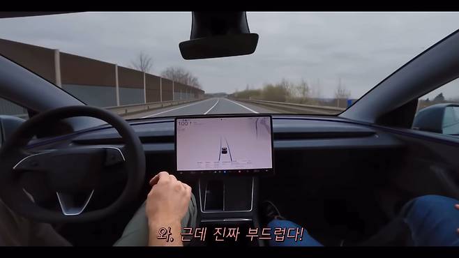 또한 향상된 오토파일럿 기능은 운전을 정말 편리하게 만들어줍니다. 버튼 하나만 누르면 반자율 주행이 시작되어 무지개 도로 위를 달리는 듯한 시각적 효과도 나타났죠. 완전 자율 주행 기능은 나중에 900만 원 정도를 주고 업데이트처럼 추가할 수 있다고 하는데, 이 기능 하나 때문에 테슬라를 구매하는 분들이 있을 정도라고 합니다. 고속도로 진출입로나 복잡한 코너에서도 완벽하게 작동하는 모습을 보여주었습니다.