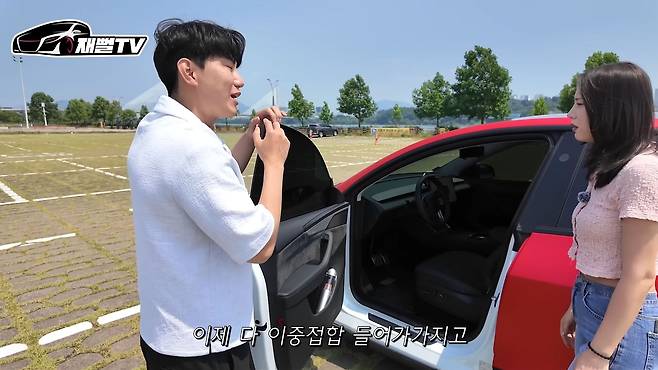 테슬라 모델 Y의 트렁크는 정말 넓고 쾌적했습니다. 밑에 추가 수납공간까지 있어서 사람이 들어가도 될 정도였죠. 실제로 제가 트렁크에 들어가 보는 퍼포먼스를 연출했는데, 생각보다 아늑하고 공간도 괜찮아서 놀랐습니다. 자동 개폐 기능까지 완벽하게 작동하는 트렁크였죠.