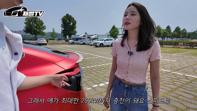 충전구는 생각보다 아담하게 느껴졌는데요, 롱레인지 모델은 NCM 배터리가 탑재되어 최대 250kW까지 고속 충전이 가능합니다. 다만 50%까지는 빠른 속도로 충전되다가 그 이후부터는 속도가 줄어드는 경향이 있다고 해요. 인증 주행 거리는 480km지만 실제로는 500km 이상 주행이 가능하다고 합니다.