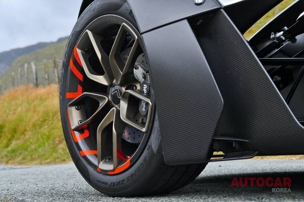 그다음에는 운전 경험이 필요하다. 모노 R은 끔찍하고 야만적으로 날렵하며 참을 수 없을 정도로 예민하다. 심지어 트랙이 아닌 일반도로에 적합하게 맞춰진 서스펜션이 적용됐음에도 완벽하지 않은 표면 위에서 매우 단단한 반응을 보인다.
