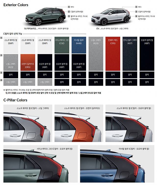 또한 기존 최상위 트림에서만 선택 가능했던 선루프는 하이브리드 모델의 경우 프레스티지 트림부터, EV 모델의 경우 기본 트림부터 적용 가능하다. 기아는 차량의 C필러 색상 선택이 가능한 ‘엣지 팩’에 새로운 색상 및 조합을 추가하고 ‘마이 컴포트 패키지’를 신규 운영해 고객 선택의 폭을 넓혔다.