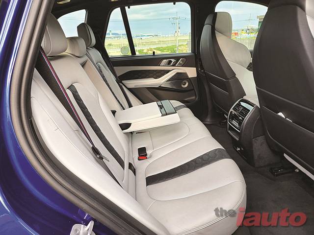 리어는 라이트 글래스 커버가 3차원으로 디자인되어 조각 같은 느낌을 더했고, 루프의 리어 스포일러와 같이 차체 후면에서 발생하는 난류 발생을 감소해 공기역학 특성을 최적화했다. 여기에 리어 디퓨저 좌우로 위치한 듀얼 머플러, 고성능을 알려주는 X5 M 컴페티션 로고가 적용되면서 멀티 플레이어 SUV임을 제시하고 있다.