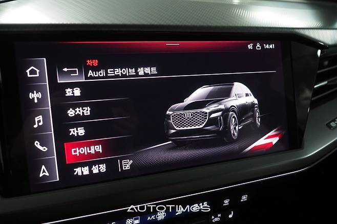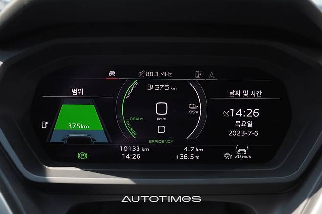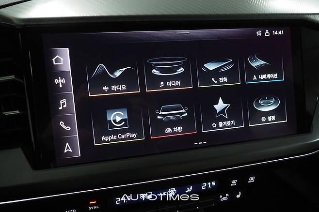 반면 정 가운데 모니터는 내연기관 아우디와 큰 차이가 없다. 타일 형식으로 꾸민 UI를 비롯해 작동 과정도 익숙하다. 공조장치는 물리 버튼으로 준비했고 크기가 큼직해 누르기 편하다. 바로 아래에는 두 단계로 나뉜 센터터널이 위치한다. 전자식 변속 버튼과 시동 및 비상등, 볼륨 조절 등 필요한 기능만 정확히 들어있다.