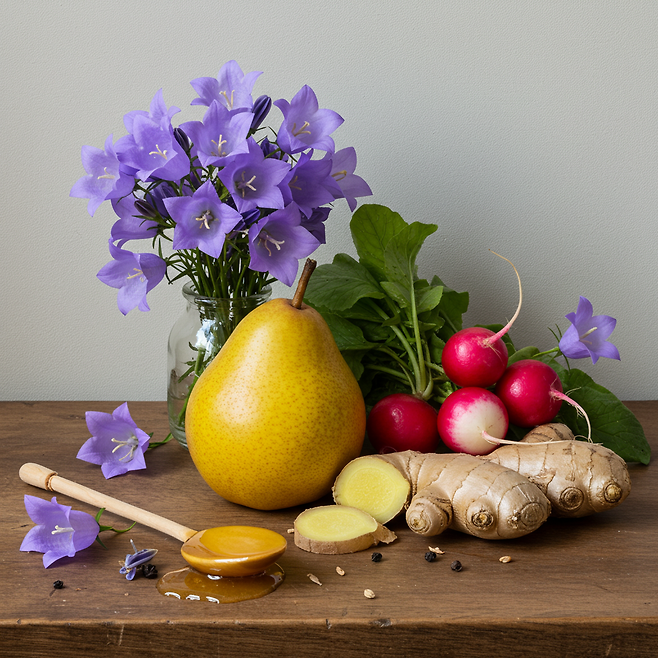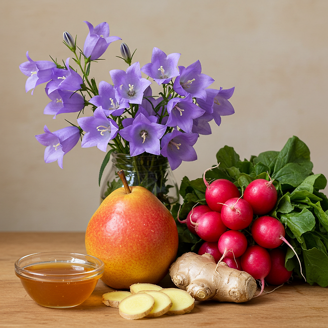 [1] 도라지도라지에는 사포닌과 루테올린이 풍부해 기관지 점막을 보호하고 염증을 줄여주는 효과가 있어요.