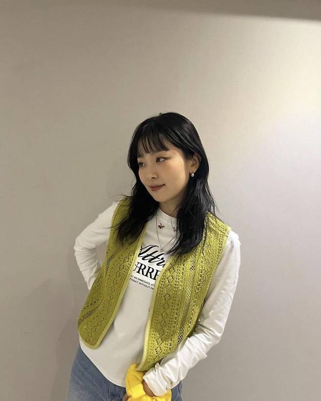 이 옷이야말로 진정한 추억 소환 룩~. 성긴 짜임 디테일이 돋보이는 크롭 기장의 조끼를 착용한 현아. 흰 티셔츠와 함께 캐주얼하게 스타일링한 태연 그리고 올리브 컬러로 포인트를 준 슬기까지. 이거야말로 앞으로 ‘유행각’?