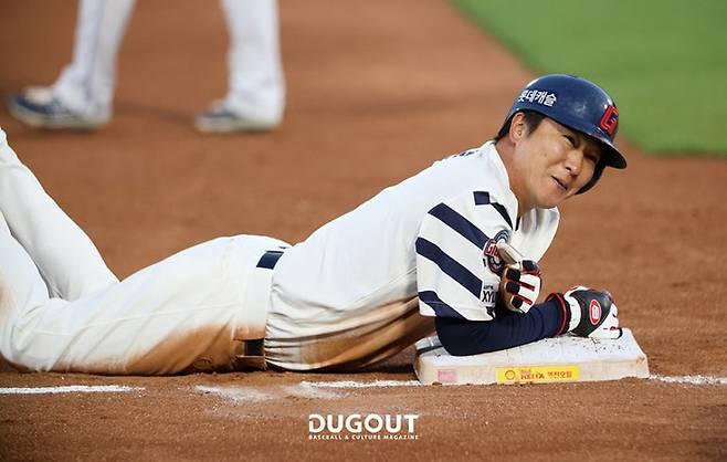 그걸 하던 시기는 제가 시합에 주전으로 자주 나갈 때였어요. 타격할 때 왼쪽 어깨가 빨리 열려서 그걸 의식하려고 만든 동작이었는데, 이젠 경기에도 가끔 나가는데 그걸 굳이 해야 하나 싶긴 하더라고요. (머쓱) 그거 할 시간에 타석에 집중이나 더 하자는 생각으로 잡동작을 다 없앴어요. 그리고 아들들이 컸으니까 야구 중계방송을 보잖아요. 화면에 아빠 얼굴이나 더 보여주는 게 낫겠다고 봤어요.