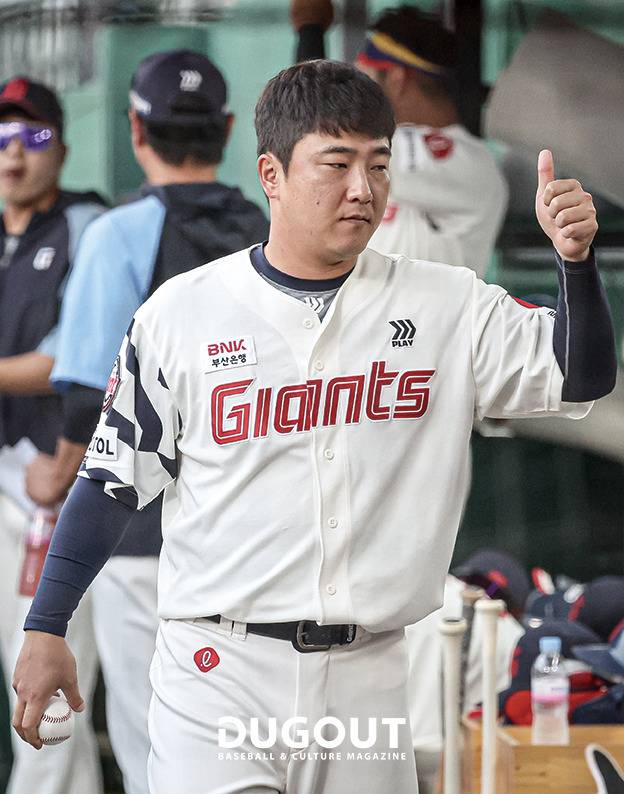 우리 팀에 야구 잘하는 어린 선수가 많잖아요. 그래서 야구 실력에 관한 얘기보다는 감정을 조절하는 방법을 알려주거나, 또 제가 지금까지 만났던 투수들이 애들에 비하면 더 많으니까 상대 투수에 대한 정보를 주죠. 동희도 그렇고 (나)승엽이도 그렇고, 우리 애들이 야구를 잘하잖아요. 근데 그 속에서도 스스로 지켜야 할 부분들이 있거든요. 특히 야구는 경기 수가 많기 때문에 빨리 잊어버려야 할 것들, 혹은 계속 가지고 가야 할 것들이 분명해요. 그런 것 위주로 대화하는 것 같아요.