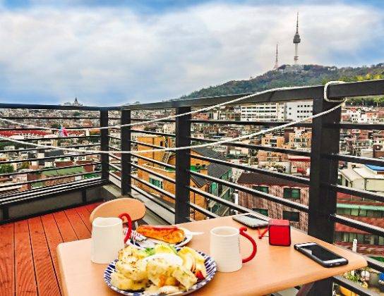 사실 이 같은 이국적 느낌의 절반정도는 루프탑이기에 가능했다. 만약 직각으로 서 있는 벽이었다면 아무리 넓고은 창을 만들어 놨어도 이와 같은 분위기는 쉽지 않았을 것이다.