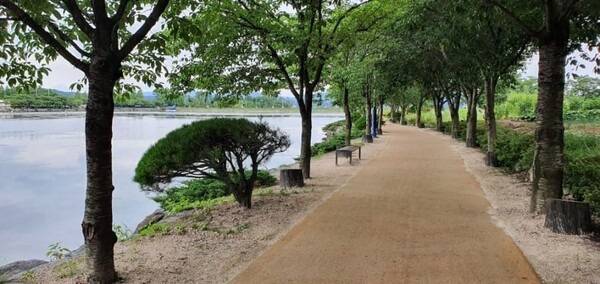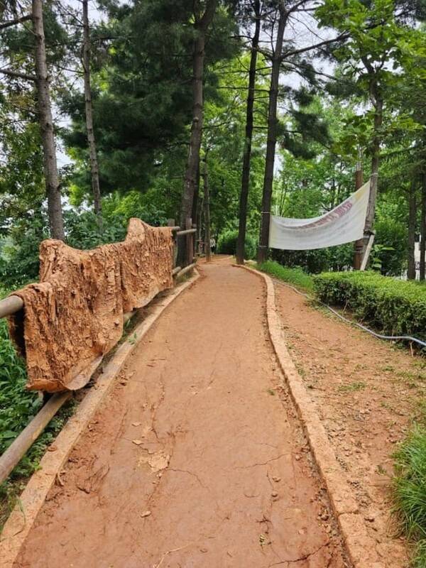 산책로는 대부분 흙길로 이루어져 있어 맨발로 걷기에 적합합니다. 중간중간 나오는 돌길 구간은 발바닥 마사지 효과를 줘 색다른 경험을 선사합니다.