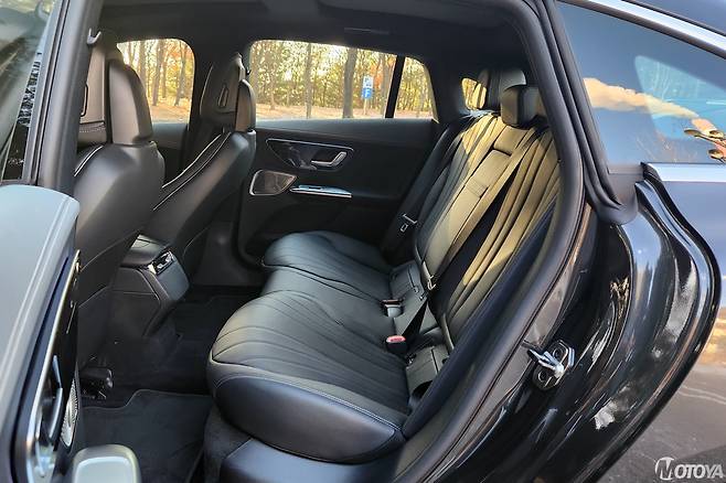 벤치형으로 설계된 좌석은 편안한 착좌감을 제공한다. 등받이의 각도도 적정한 수준이다. 좌우측에는 3단계 열선 기능을 제공한다. 뒷좌석은 성인 남성에게도 충분한 공간을 제공한다. 머리 공간은 약간 타이트한 느낌이지만 통상적인 후륜구동 자동차와 달리, 센터터널이 솟아 있지 않아서 다리 공간이 넉넉해 우수한 거주성을 제공한다.