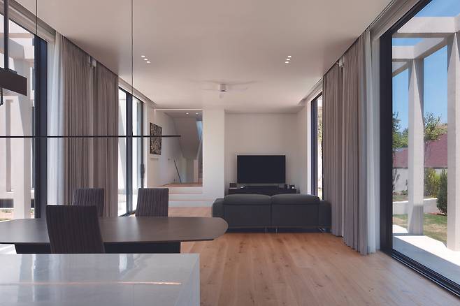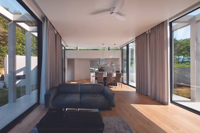 수동적인 마당이 아니라 주변을 아우르는 능동적인 공간감으로 자연을 대할 수 있다면 건축의 완성이 어디를 지향해야 하는지 가늠될지도 모른다. 안과 밖을 둘로 나누는 이분법을 치우고 서로 이어지도록 공간을 열었다. 그것이 이 땅에 어울리는 방식이라 생각하기 때문이다.