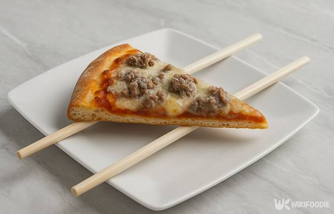 동시에 피자 밑면이 접시에 닿지 않도록 나무젓가락 두 개를 깔고 그 위에 피자를 올린다. 이 상태로 3분 정도 가열하면 수분 증발을 줄이고, 바닥 눅눅함도 방지할 수 있다.
