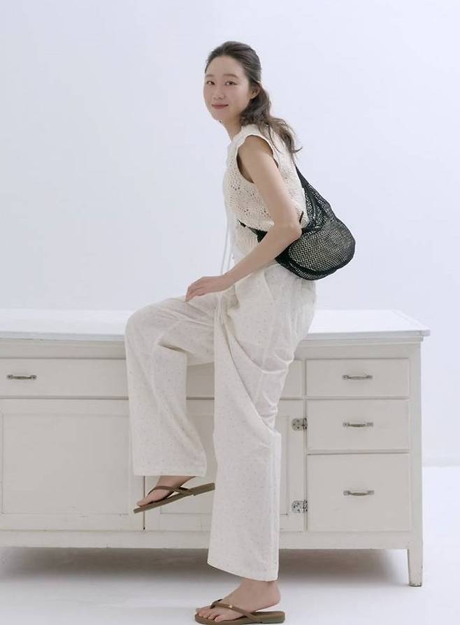 배우 공효진은 최근 자신의 채널에 화이트 러블 블라우스와 크로셰 니트 베스트, 아이보리 팬츠, 여기에 구멍이 숭숭 뚫린 그물 크로스백을 레이어드한 매치해 보헤미안 분위기의 쿨한 폭염패션을 연출했다.