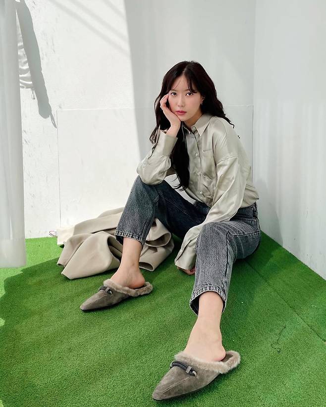 스트레이트핏 데님 팬츠, 화이트 스니커즈를 매치해 준 임수향~