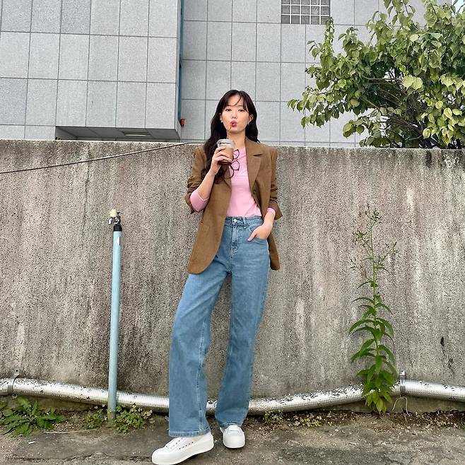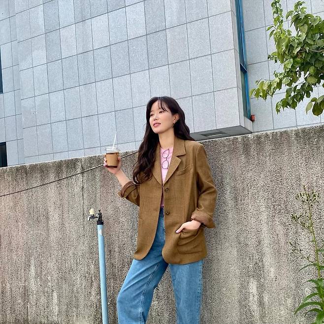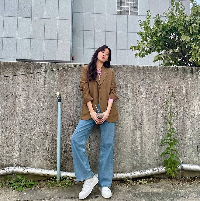 브라운 자켓은 클래식한 분위기를 주면서 임수향의 시원하게 뻗은 피지컬을