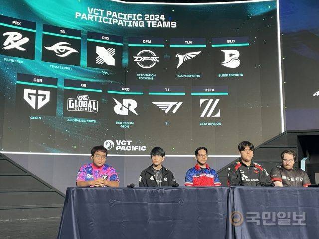 14일 서울 중구 브이스페이스에서 열린 VCT 퍼시픽’ 킥오프 미디어데이 행사에서 대회에 참가하는 11개 팀 대표 선수들은 두 팀이 ‘투톱’ 체제를 굳건히 할 거라 내다봤다.