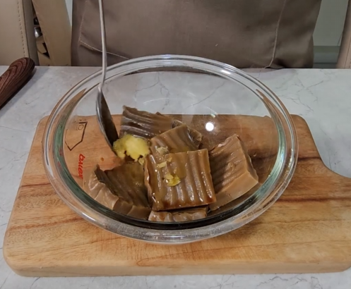 도토리묵은 너무 두껍게 자르지 말고 적당한 두께로 자르는 것이 맛의 비결입니다