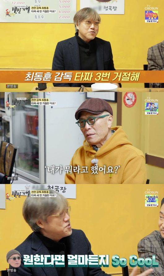 이날 최동훈 감독은 영화 ‘타짜’의 원작자인 허영만에게 제작 당시의 고충을 토로해 눈길을 끌었다. 최동훈 감독은 “타짜’가 시나리오 쓰기 너무 어렵다”라고 말문을 열었고, 허영만은 “원작이 있는데 뭐가 어렵냐”라고 응수했다.