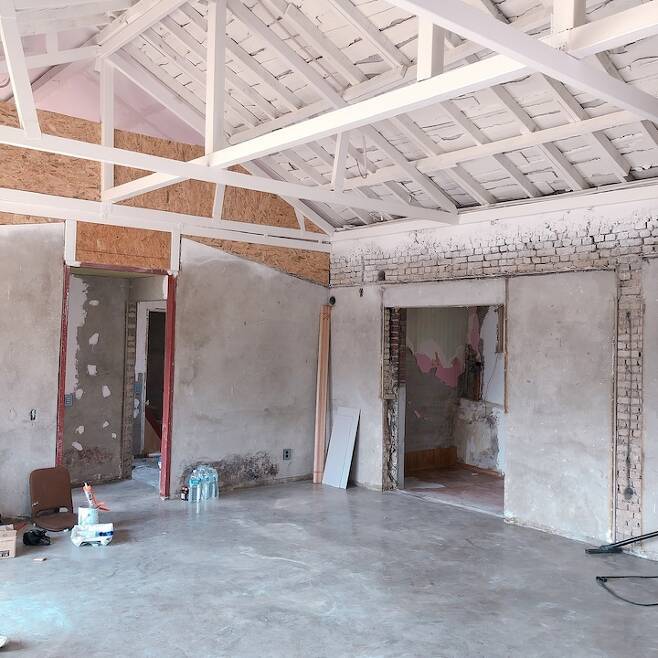 이 집은 저희 아빠가 설계하신 집이었어요. 너무 어릴 때라 아무 선택권이 없던 저희 남매가 다 자란 후, 집을 왜 여기다 지었냐고 엄청 타박을 들어오셨는데ㅋㅋ 이렇게 두 남매가 두 손 두 발 걷고 집을 고치게 되었어요. 30년 된 묵은 짐을 빼내고 골조만 남아있는 집은 정말 손볼 곳이 많더라고요.