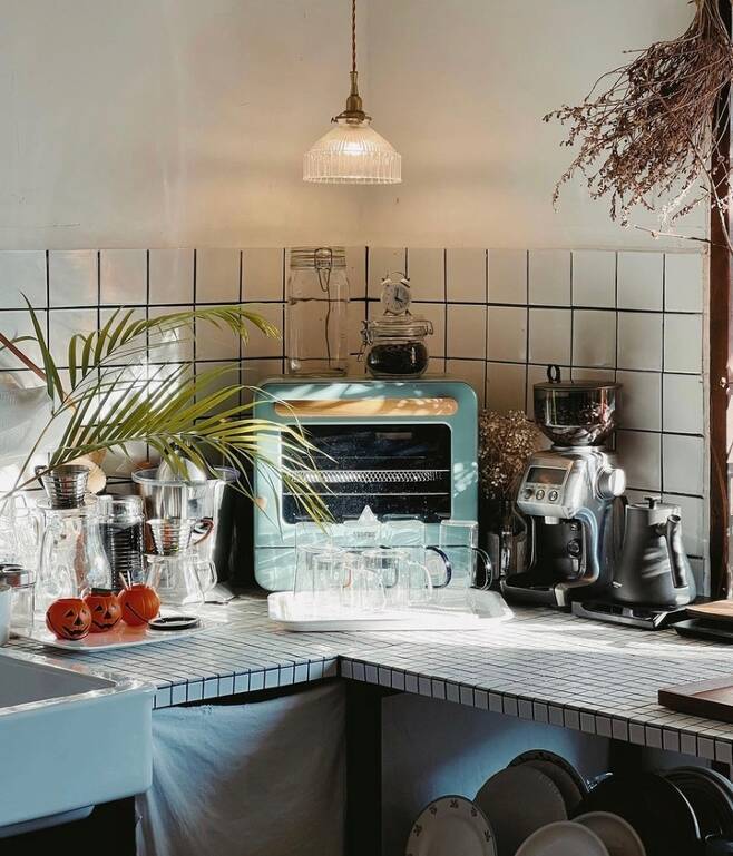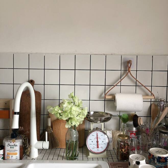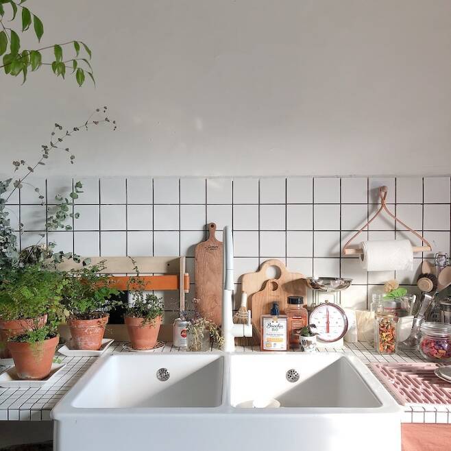 원래는 우리나라 집 짓는 국룰대로 북쪽에 부엌이 위치하는 답답한 배치였는데, 이렇게 남쪽에 위치하니 해도 잘 들고 사진을 찍어도 얼마나 예쁘게요?