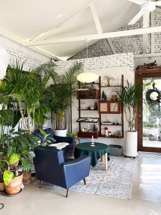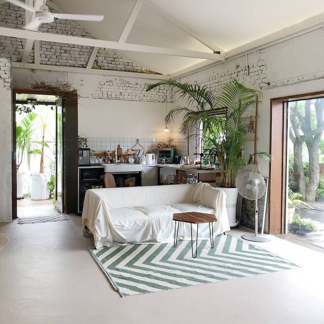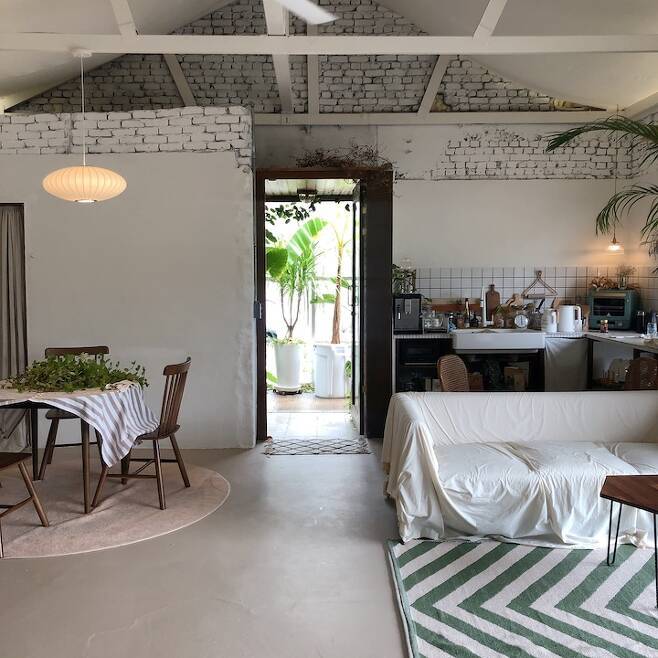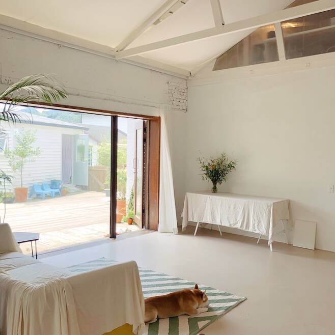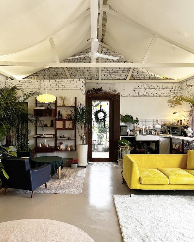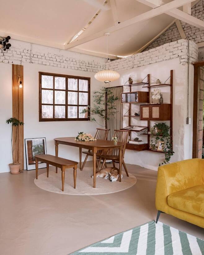 거실과 마당은 내추럴한 무드로, 본채 공간의 방은 오빠가 좋아하는 레트로 무드로, 별채인 B공간은 제가 좋아하는 화이트 무드로 꾸몄어요. (저는 레트로가 예쁜지 잘 모르겠고, 오빠는 '야 여기 왜이리 하얗고 뭐가 너무 없는 거 아니냐'고 서로 이해 못 하겠다며 ㅋㅋㅋ) 그렇게 각자의 취향으로 완성된 공간은 스튜디오 콘셉트의 다양성을 주게 되었어요 :)