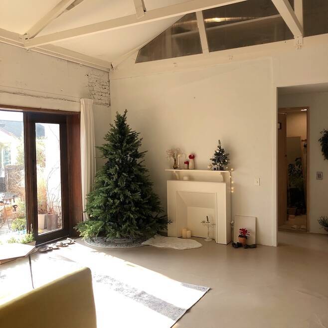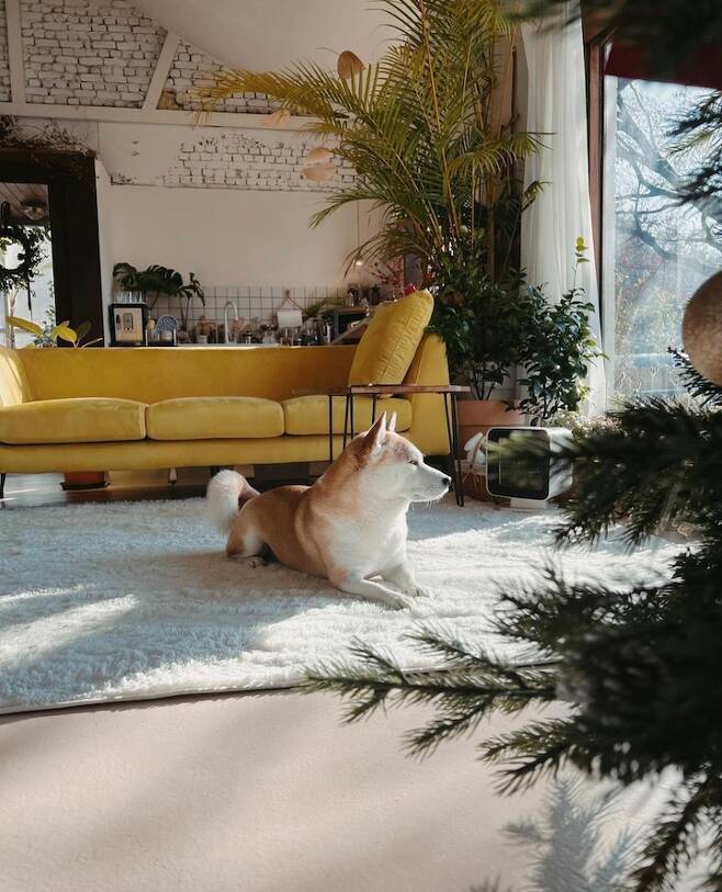 현재 겨울을 보내고 있는 가장 최근의 거실이에요, 겨울이라 폭신한 러그와 트리로 장식되어 있는 모습이에요. 해가 깊이 들어오고 빛의 온도가 달라진 게 느껴지시죠. 이 햇살에 등대고 있으면 노곤노곤 잠이 오는데 잠들었다가 더워서 땀 흘리며 깨는 그런 곳입니다. ㅋ