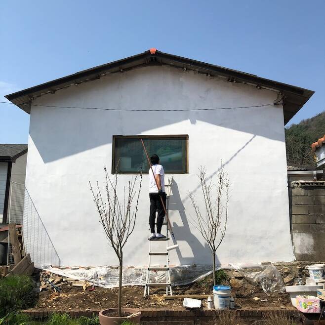 보이는 저 벽은 옆집 외벽인데 옆집 아저씨 찾아가서 허락받고 페인팅을 했어요.