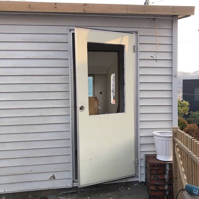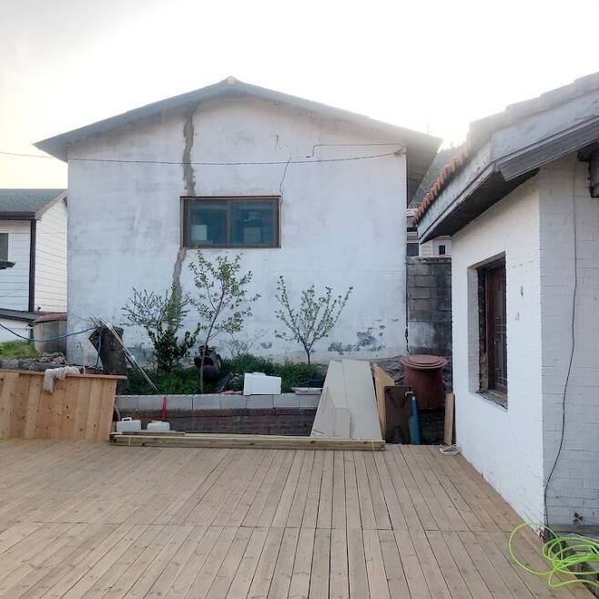 마당 맞은편에 있는 별채 공간이에요. 거의 창고처럼 사용했던 곳이라 외관도 내부도 전부 싹 바꿔야 했어요.