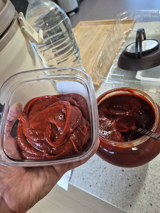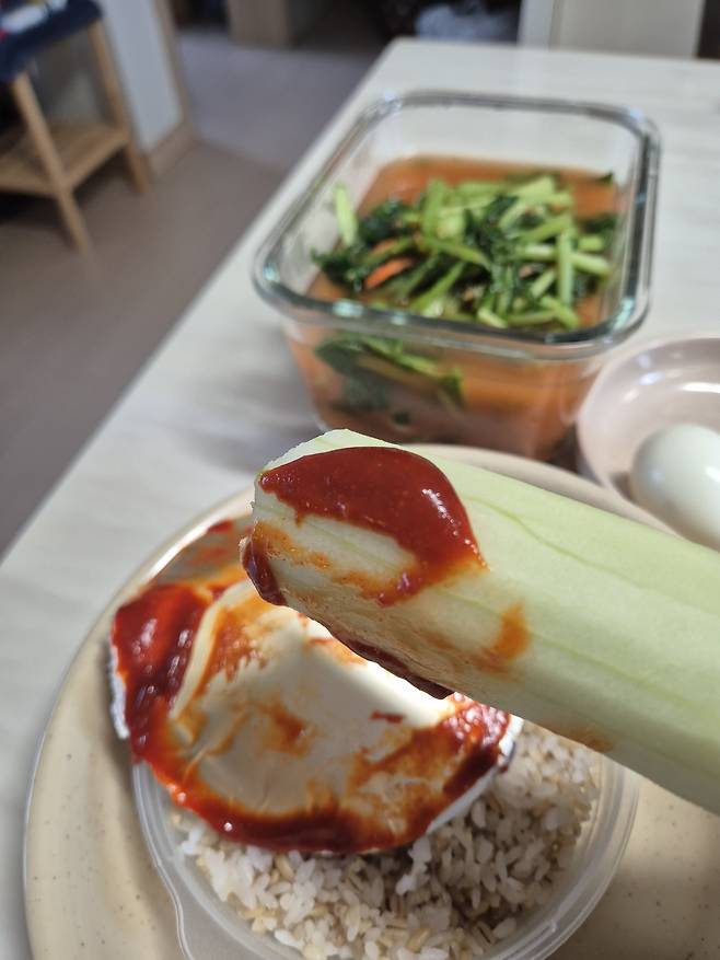 고추장 뚜껑에 남은 장 싹싹 닦아 오이먼저