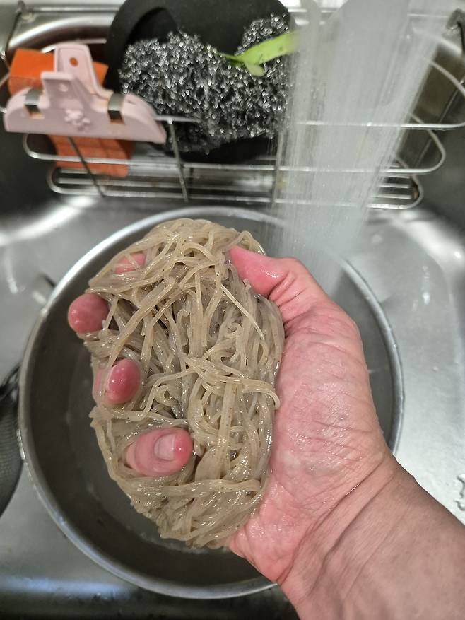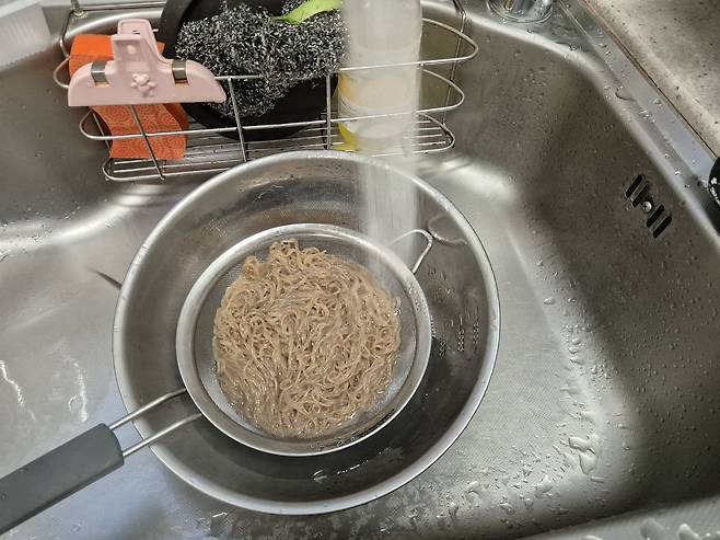 물에서 씻은 면과 면에서 수분이 빠져나와도