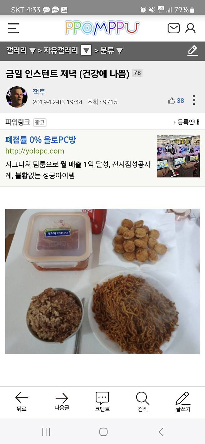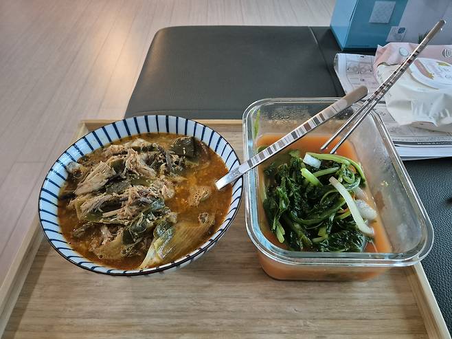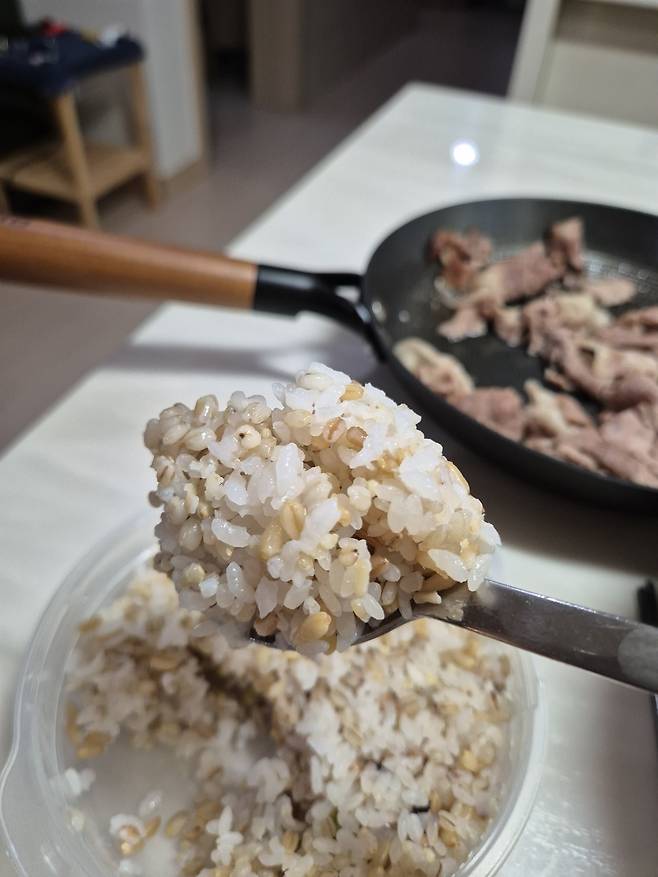 돼지고기가 밥을 불러서 고추랑 좀 먹었습니다