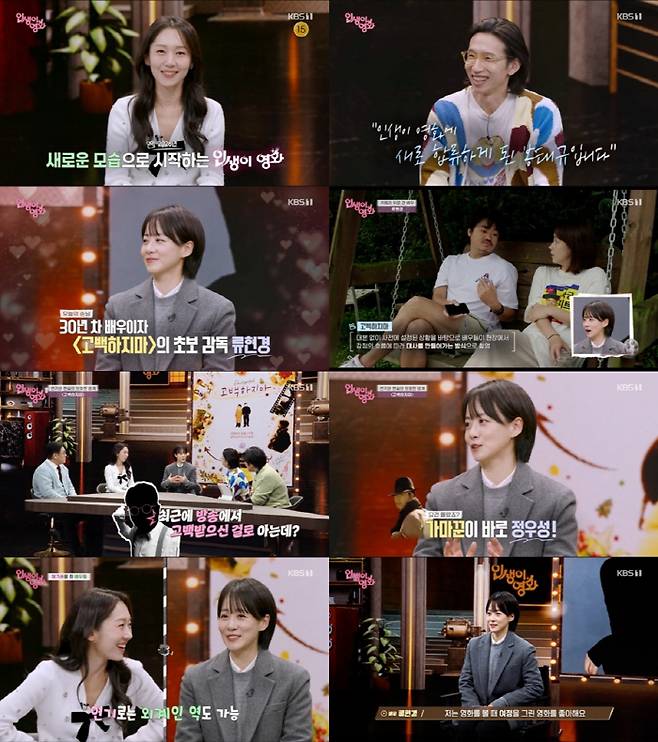 17일 밤 방송된 '인생이 영화'에는 엄지인, 봉태규 새 MC 체제의 출발을 알리는 동시에, 감독으로서의 첫 걸음을 내딛은 류현경의 '고백하지마' 제작 비하인드와 도전을 멈추지 않는 그녀의 30년 연기 여정을 관통하는 이야기가 펼쳐졌다.