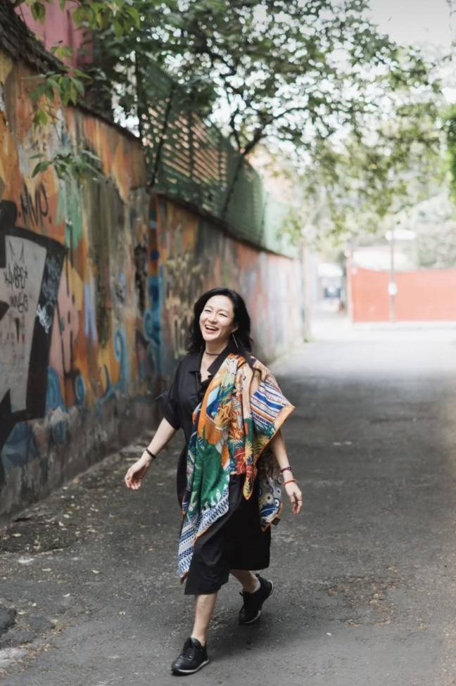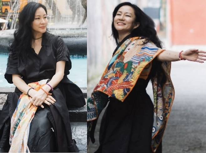 1980년대 가수 출신 이지연이 세련된 올블랙 스타일과 감각적인 스카프 포인트가 돋보이는 사진을 인스타그램에 공개했습니다.